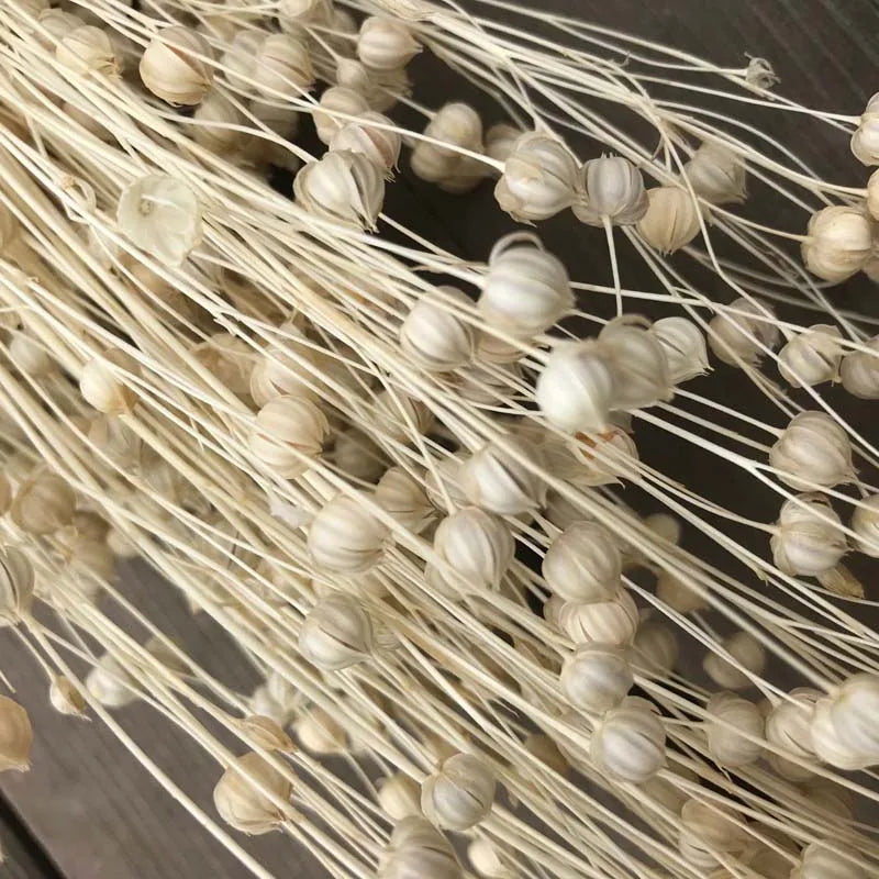 Native to Asia and some parts of the Mediterranean, Flaxseed Flower Fruits are small dry capsules composed of 5 lobes. Our Flaxseed Flower Fruits are naturally air-dried and then grouped into small bunches.